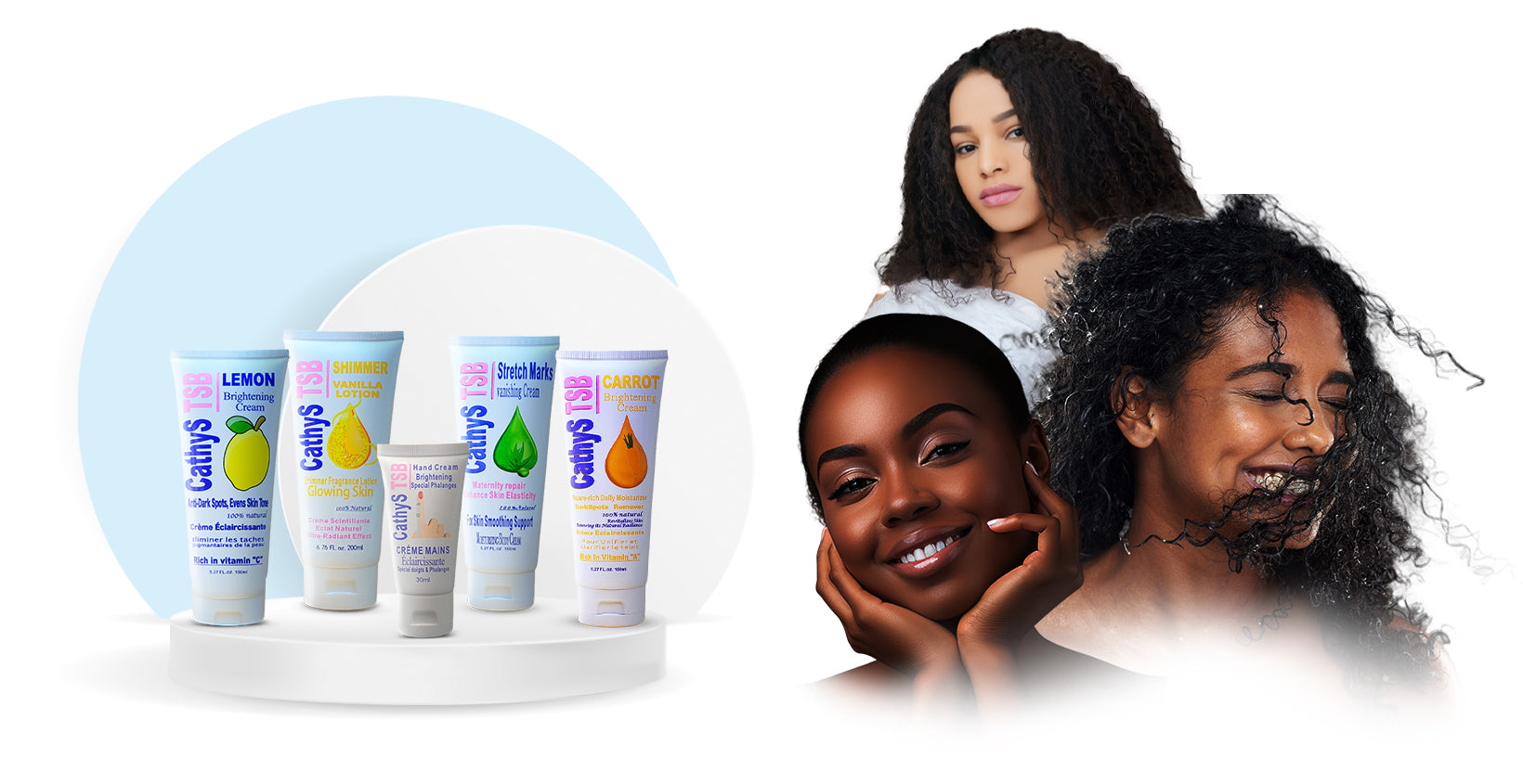 From our signature stretch mark creams to our dark spot correctors, anti-aging serums, and acne solutions each product reflects our dedication to healthy, radiant skin. Whether you're dealing with stubborn blemishes, uneven tone, or simply want to maintain a youthful glow, CathyS TSB is here to help you feel confident and comfortable in your own skin.